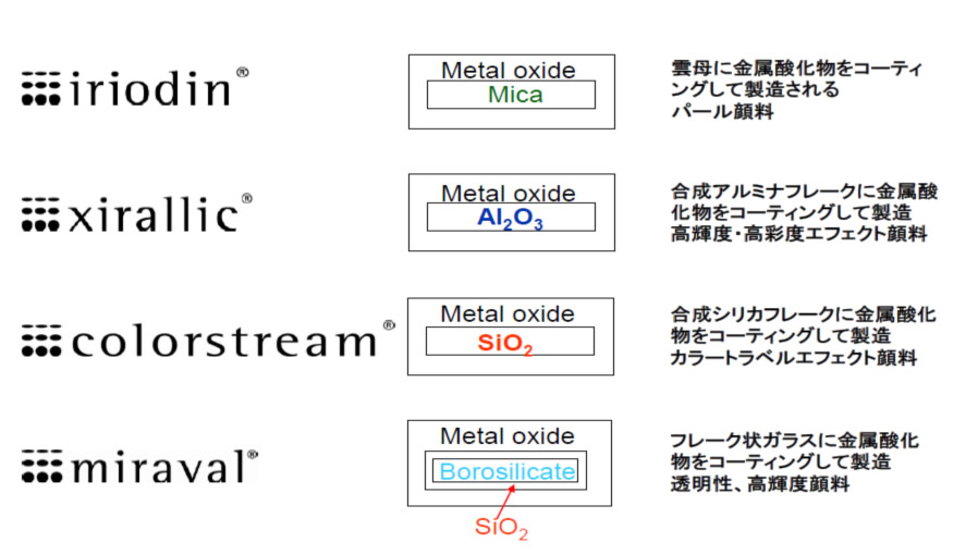 ・意匠性顔料:自動車塗料用、パウダーコーティング用、